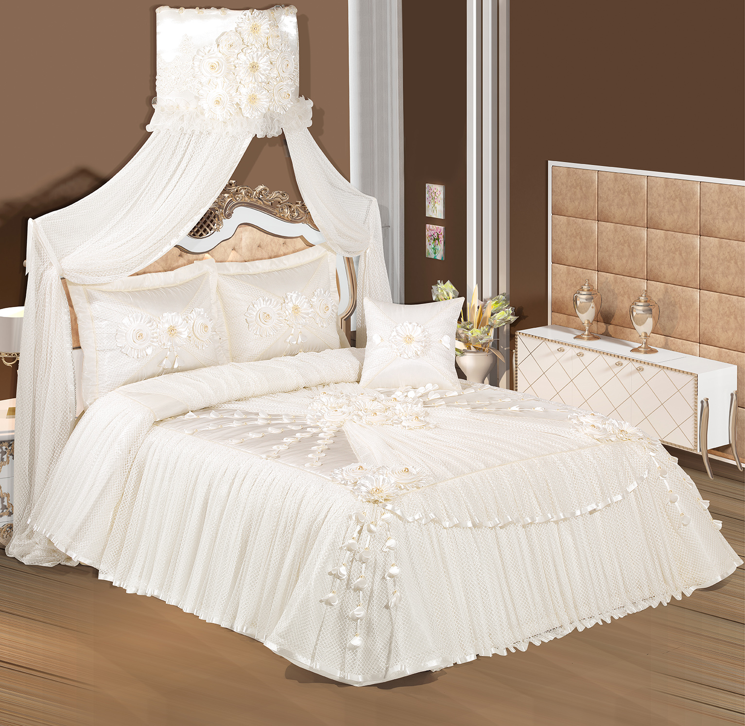 Özel dokumayla üretilmiş Petekli Tül kullanarak tasarladığımız Esila Yatak Örtüsü, üzerindeki yapraklar, çiçek ve incilerle yatak odalarınıza taze baharı taşıyor.