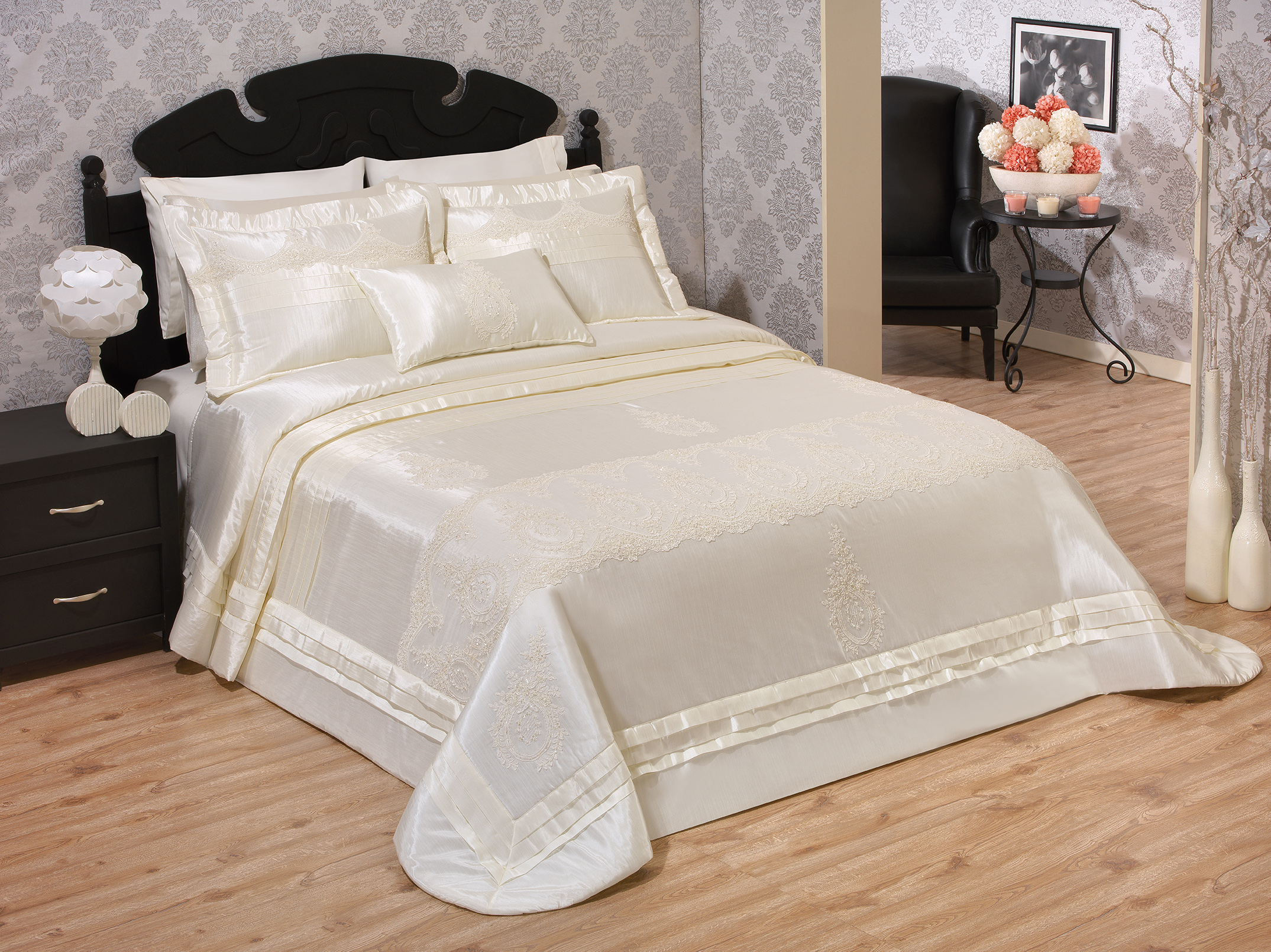 Sadelik, Asillik, Şıklık, Mükemmel İşçilik...Gala Yatak Örtüsü üzerindeki incilerle bezenmiş Dantelleri ile yatak odanızda asaleti ile göz kamaştıracak.