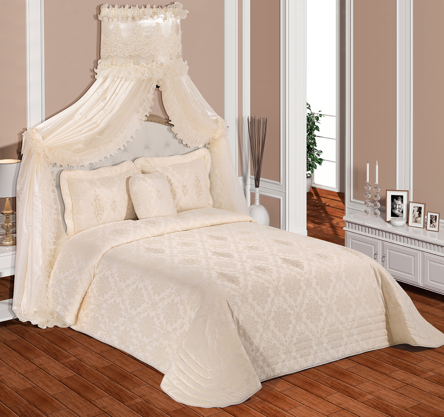 Parlak jakarlı Pamuklu Kumaş ve Fransız Danteli aplikleri ile tasarlanmış olan Klas Yatak Örtüsü, yatak odasında hem şıklık hem spor bir görünüm sağlamak isteyen müşterilerimiz için özenle hazırlanmıştır.