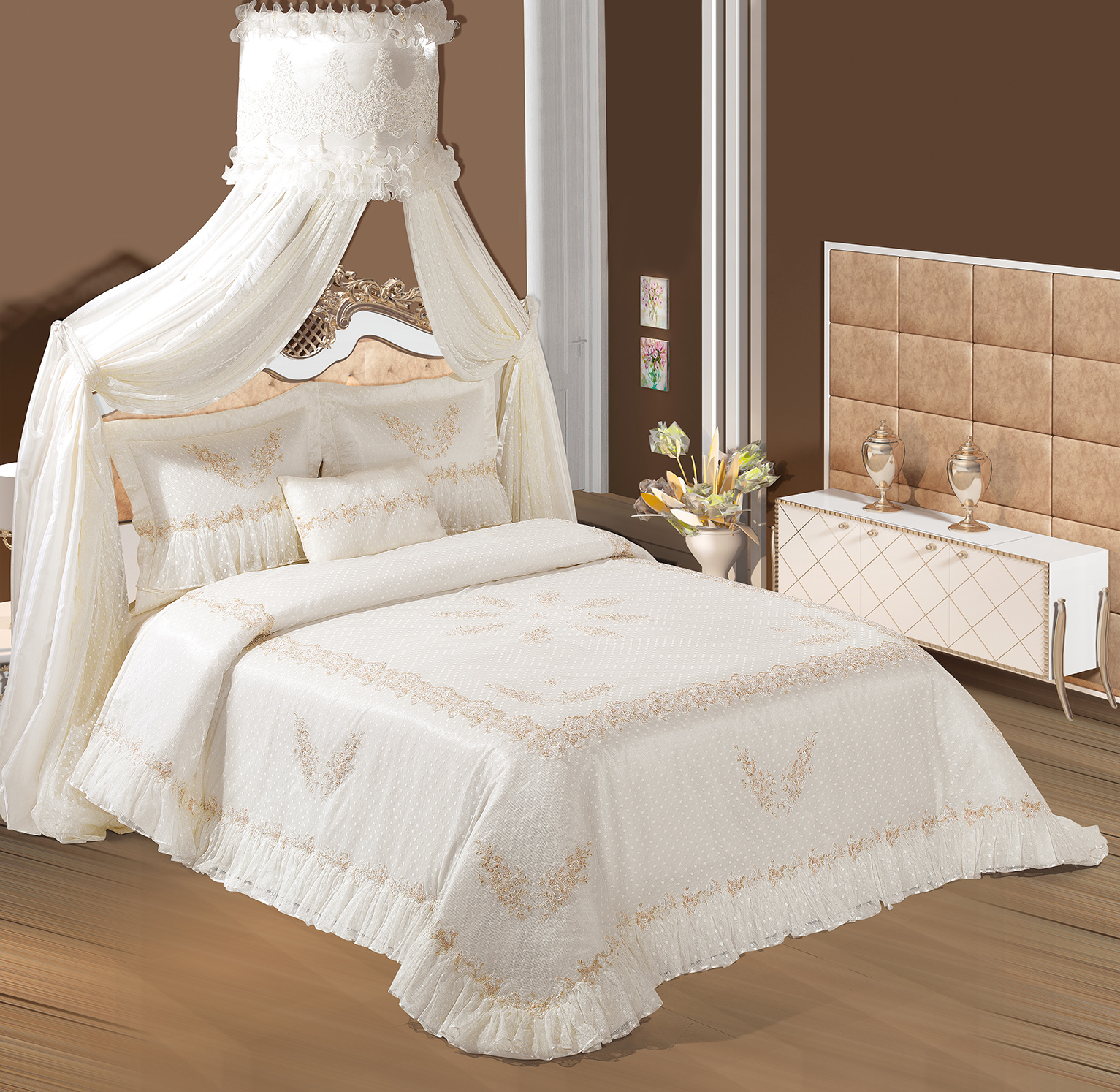 Özel dokumayla üretilmiş Puanlı Tül kullandığımız Mira Yatak Örtüsü, size klasik ve modern çizgileri aynı yatak örtüsünde birleştirerek Mükemmel İşçilikle sunuyor.
